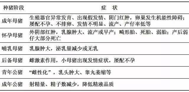 食欲大減,體重減輕,高度興奮不安,假發情,同時顯現外陰道炎癥狀,外陰腫大、潮紅,陰門外翻,頻頻排尿;同時,繁殖機能發生障礙,如不孕、妊娠后流產或死胎。