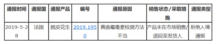 據歐盟食品飼料類快速預警系統(RASFF)消息,2019年5月28日,法國通過RASFF通報我國出口花生不合格。