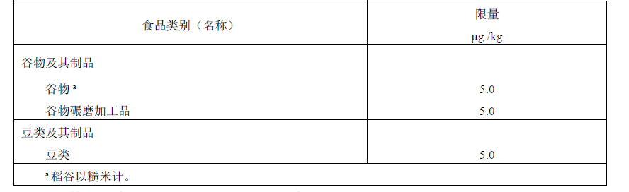 GB2761—2011食品安全國家標準食品中真菌毒素限量規定了食品中赭曲霉毒素A限量指標 。