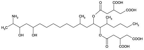 伏馬菌素 (Fumonisin FB) 是一種霉菌毒素,是由串珠鐮刀菌 (Fusarium moniliforme Sheld)產生的水溶性代謝產物,是一類由不同的多氫醇和丙三羧酸組成的結構類似的雙酯化合物。主要污染糧食及其制品,并對某些家畜產生急性毒性及潛在的致癌性,已成為繼黃曲霉毒素之后的又一研究熱點 。