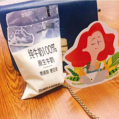 除了“耍酷”以外,還有部分網紅食品另辟蹊徑,標榜“返璞歸真”。其中,“小白奶”正是憑借極簡風的高顏值走紅。與傳統利樂包不同,網絡上突然流行起來的一批牛奶選擇用透明塑料袋包裝,并打出“好品質看得見”“看得到的好牛奶、喝得到的濃純香”“回歸鮮奶本來的味道”等廣告語,戳中很多人追求健康的心思。有意思的是,這些透明袋上通常又在儲存條件中注明要“避光密封保存”,或者標出“低溫避光貯存更安全、更營養。嚴禁在日光下晾曬,否則會破壞口感?!?