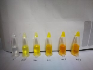 2.2:若溶液顏色呈淡黃色至橘色,則表示樣品中有添加雙氧水。顏色越深表示過氧化氫(雙氧水)含量越高。