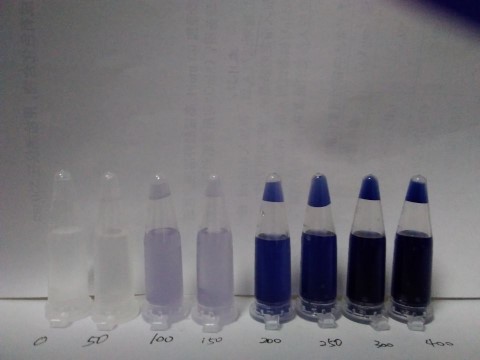 取0.5mL樣品液于離心管中,加入1 mL的檢測試劑,試劑立即與食鹽中的碘發(fā)生化學(xué)反應(yīng)而顯色.
