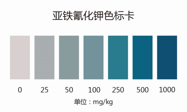 比色管顏色藍色越深,亞鐵氰化鉀含量越高。