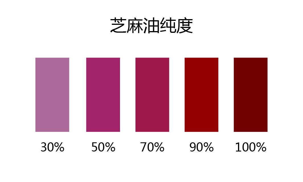 1.3:如果芝麻油的純度在80%以下,此時(shí)顯色差異已很明顯。如果差異不明顯時(shí),打開蓋,加入純凈水到離心管近口處,蓋蓋后顛倒20次混勻,在10分鐘內(nèi),將樣品管與色卡進(jìn)行比對(duì)。