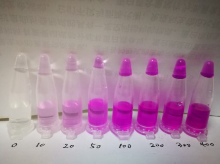 2.1:2分鐘后觀察檢測管中顏色的深淺,紫紅色顏色越深,表示樣品中硝酸鹽的含量越高;