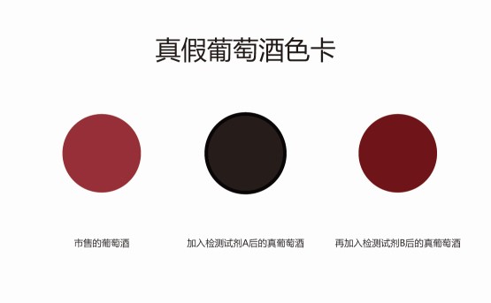 2.3:遇堿變了色的真葡萄酒,加入檢測試劑B后又還原到了最初的紫紅色,也恢復了之前的透光感。而勾兌假酒依然沒有絲毫變化。