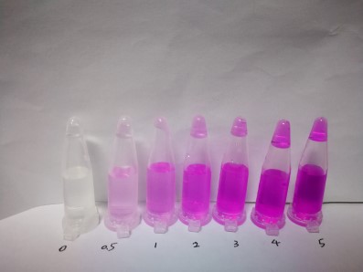 2.2:若溶液中呈紫色,說明溶液中存在錳離子。錳的含量與顏色深淺相關。(見色圖)