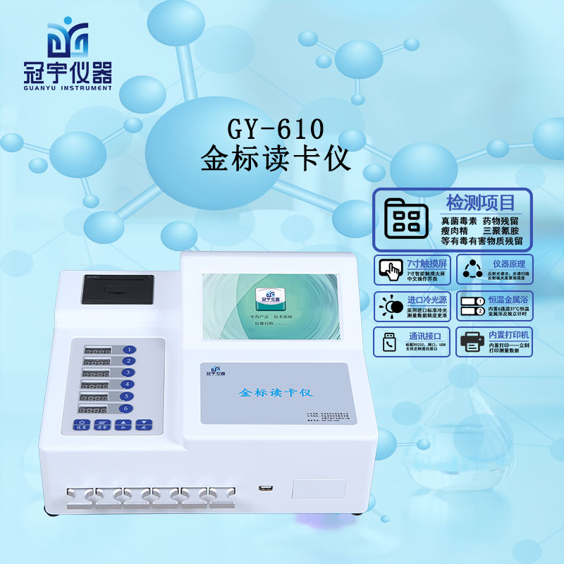 冠宇金標(biāo)讀卡儀采用膠體金法檢測(cè)技術(shù),可以檢測(cè)動(dòng)物以及動(dòng)物源食品當(dāng)中的獸藥殘留,有毒有害物質(zhì),抗生素殘留,以及動(dòng)物疾病疫病的檢測(cè)儀器。冠宇金標(biāo)讀數(shù)儀可以通過(guò)灰度對(duì)應(yīng)濃度值隨時(shí)間的變化曲線來(lái)對(duì)待檢樣品中的抗原進(jìn)行定量數(shù)值分析。自動(dòng)檢測(cè),自動(dòng)分析,自動(dòng)上傳,對(duì)監(jiān)測(cè)數(shù)據(jù)進(jìn)行對(duì)應(yīng)固定編碼的數(shù)據(jù)存儲(chǔ)。建立健全監(jiān)測(cè)體系,確保動(dòng)物源性食品安全。目前,我國(guó)已制定了動(dòng)物源性食品中獸藥最高殘留限量,但對(duì)這些獸藥殘留檢測(cè)的標(biāo)準(zhǔn)方法還沒(méi)完全建立,且獸藥殘留檢測(cè)設(shè)備非常昂貴。缺乏快速篩選和確認(rèn)的方法,制約了抗生素藥物殘留檢測(cè)工作的進(jìn)一步開(kāi)展。同時(shí)進(jìn)入畜禽體內(nèi)的抗生素種類繁多、復(fù)雜,一些標(biāo)準(zhǔn)已明顯滯后,應(yīng)盡快制定國(guó)家或行業(yè)標(biāo)準(zhǔn),健全從食品生產(chǎn)到餐桌的全程安全監(jiān)控體系,對(duì)動(dòng)物食品實(shí)行市場(chǎng)準(zhǔn)入制和產(chǎn)地追溯制,對(duì)濫用抗生素的養(yǎng)殖者和銷售藥物殘留超標(biāo)動(dòng)物產(chǎn)品的違法行為依法嚴(yán)懲。
