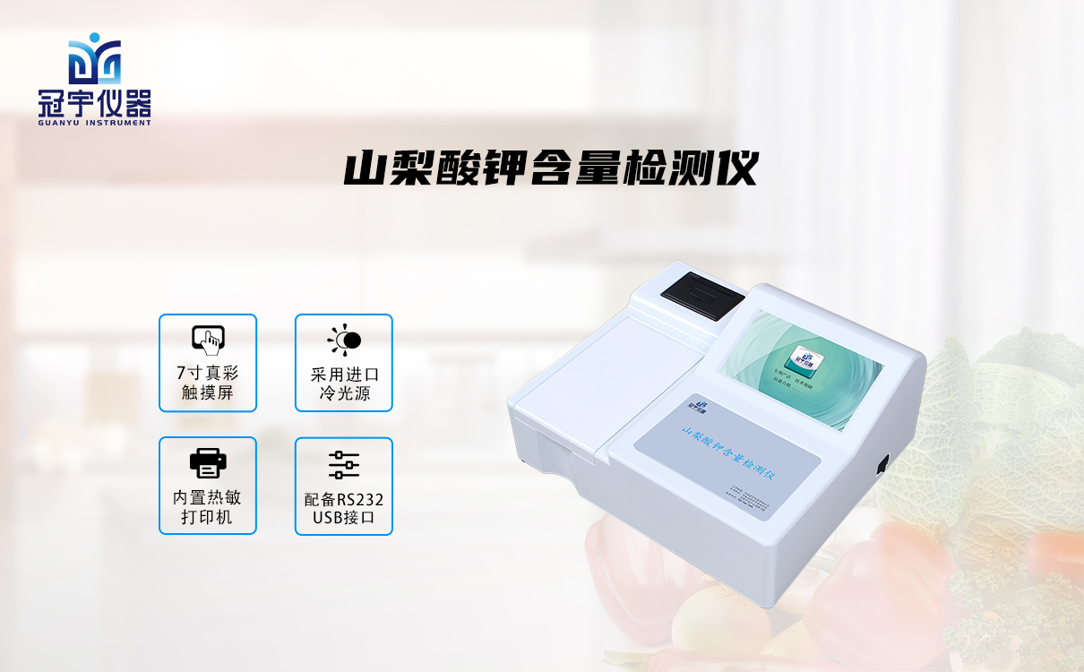 冠宇儀器山梨酸鉀檢測(cè)儀能夠快速檢測(cè)飲料、葡萄酒、醬油、醬類制品、魚(yú)干、魚(yú)肉香腸、肉制品、蔬菜水果制品、糕點(diǎn)、糖果等中的山梨酸鉀的總量。