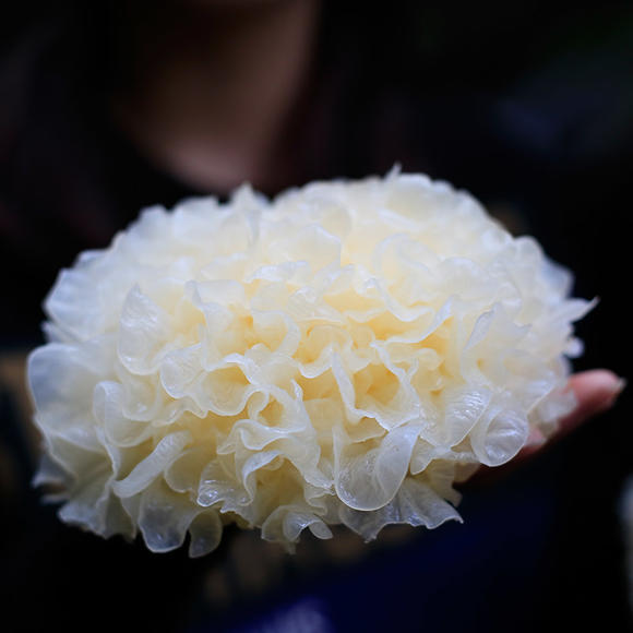 優(yōu)質(zhì)銀耳,耳花大而松散,耳肉肥厚,色澤呈白色或略帶微黃,蒂頭無黑斑雜質(zhì),朵形圓整,大而美觀。如果銀耳花朵呈黃色,一般是受潮后烘干的結(jié)果。