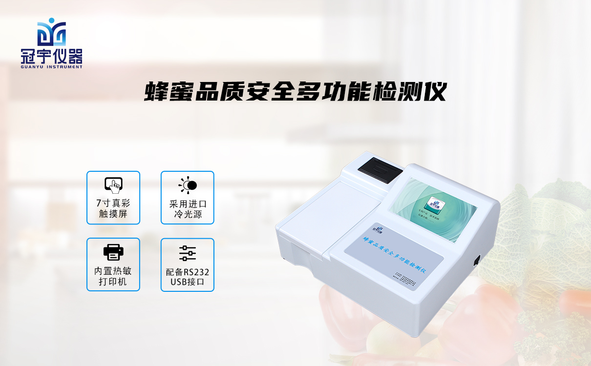 針對蜂蜜安全問題,冠宇儀器自主研發(fā)了一款蜂蜜品質安全多功能檢測儀能夠快速檢測蜂蜜水分,蜂蜜酸度,蜂蜜中淀粉,蜂蜜中果糖葡萄糖,蜂蜜中羥甲基糠醛,蜂蜜中飴糖,蜂蜜中蔗糖,蜂膠中黃銅類化合物。適用于蜂蜜監(jiān)測中心、蜂蜜及其制品生產加工貿易、蜂蜜養(yǎng)殖戶自查、工商質監(jiān)部門用于市場快速篩查等。