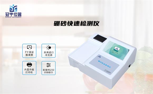 3.用儀器檢,冠宇儀器硼砂快速檢測儀能夠快速檢測面條、腐竹、米粉、涼粉、涼皮、面條、餃子皮、餛飩、粽子、肉丸、涼皮、肉制品、乳與乳制品、醬油、人造奶油、葡萄酒等食品中的硼砂含量。