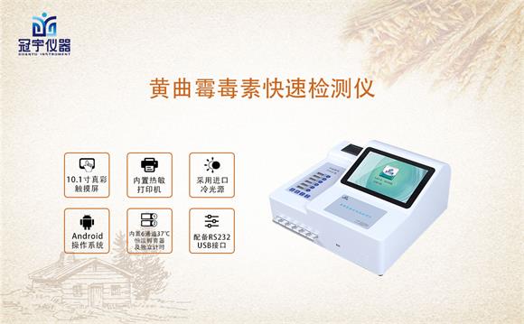 對黃曲霉毒素進(jìn)行抽檢和檢控工作也是不可缺少的。冠宇儀器黃曲霉毒素快速測試儀能夠快速定量檢測玉米、小麥、大米、大麥、小米和燕麥等谷物、飼料、面粉、食用油、調(diào)味品、乳及乳制品等中黃曲霉毒素B1、黃曲霉毒素M1的含量,適用于糧庫收糧檢測、食品監(jiān)測中心、糧油飼料生產(chǎn)加工、食品加工貿(mào)易、畜禽養(yǎng)殖戶自查、工商質(zhì)監(jiān)部門用于市場快速篩查等。