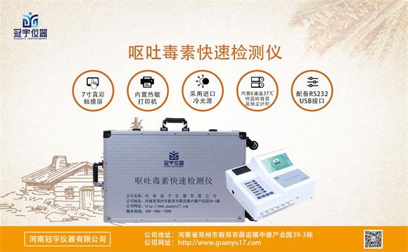 冠宇儀器生產的嘔吐毒素快速測試儀GY-710應用競爭抑制免疫層析的原理,通過檢測線熒光定量卡中的熒光強弱程度,定量分析待檢樣品中嘔吐毒素殘留含量,能夠快速檢測玉米、小麥、大米、大麥、小米和燕麥等谷物、飼料、面粉、食用油、調味品等食品中嘔吐毒素含量,適用于糧油監測中心、糧油飼料生產加工、食品加工貿易、畜禽養殖戶自查、工商質監部門用于市場快速篩查等。