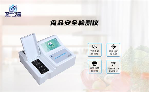 河南冠宇儀器有限公司生產食品安全檢測儀系列就是依據朗伯比爾定律原理進行自主研發的產品,可以簡單快速的對食品中農藥殘留、有毒有害物質、添加劑、非法添加劑、水質安全、重金屬殘留、等多種含量進行快速定量測定確保食品安全。
