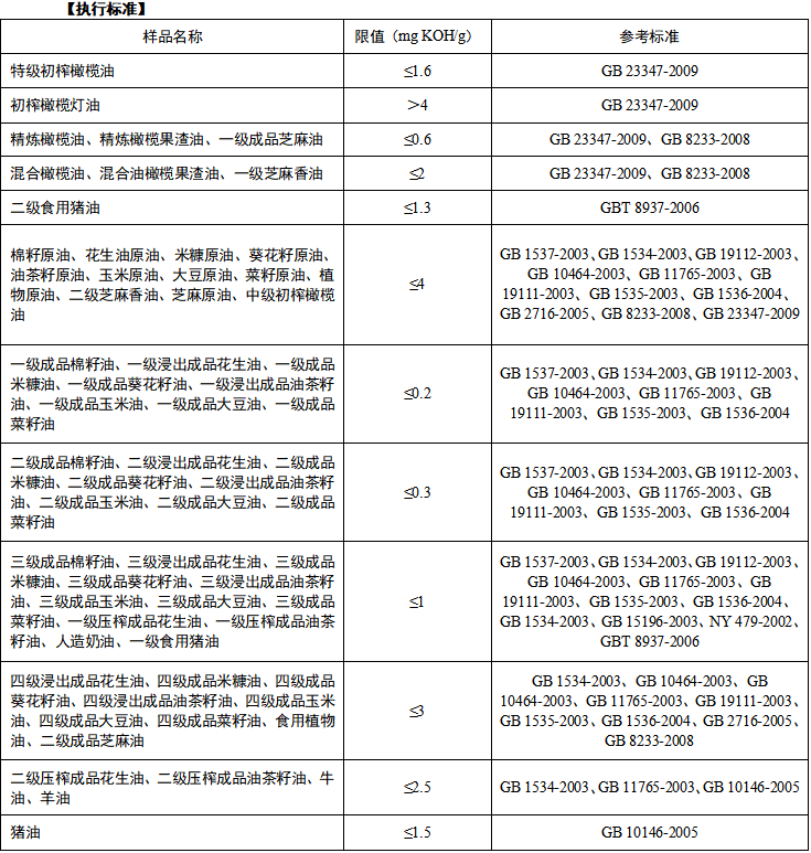 油脂在貯存期間,由于微生物、水分、溫度、光照、脂肪酶等因素的作用發生緩慢水解,產生游離脂肪酸,其置于油中使酸價增大,貯存穩定性降低。酸價可作為油脂脂肪水解程度的指標,亦可作為酸敗程度的指標。酸價越小,即油脂質量越好,精煉程度和新鮮度越好。一般要求食用植物油的酸價不得>5 mg KOH/g,酸價略高不會對人體健康產生損害;但如果酸價過高,則會導致人體腸胃不適、腹瀉并損害肝臟,因此酸價測定結果的準確性對人體健康非常重要。