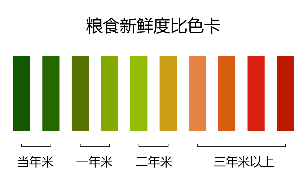 1.2:判斷新鮮度(當年、一年、兩年、三年及以上)或摻陳情況;也可將大米放在保鮮膜上,滴上試劑至大米浸潤,觀察顏色。
