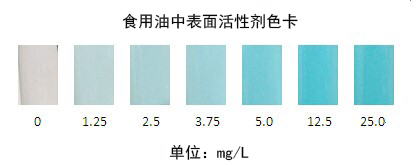 比色管下層溶液如果顯綠色或藍色,說明食用油中含有表面活性劑,藍色越深表面活性劑含量越高。