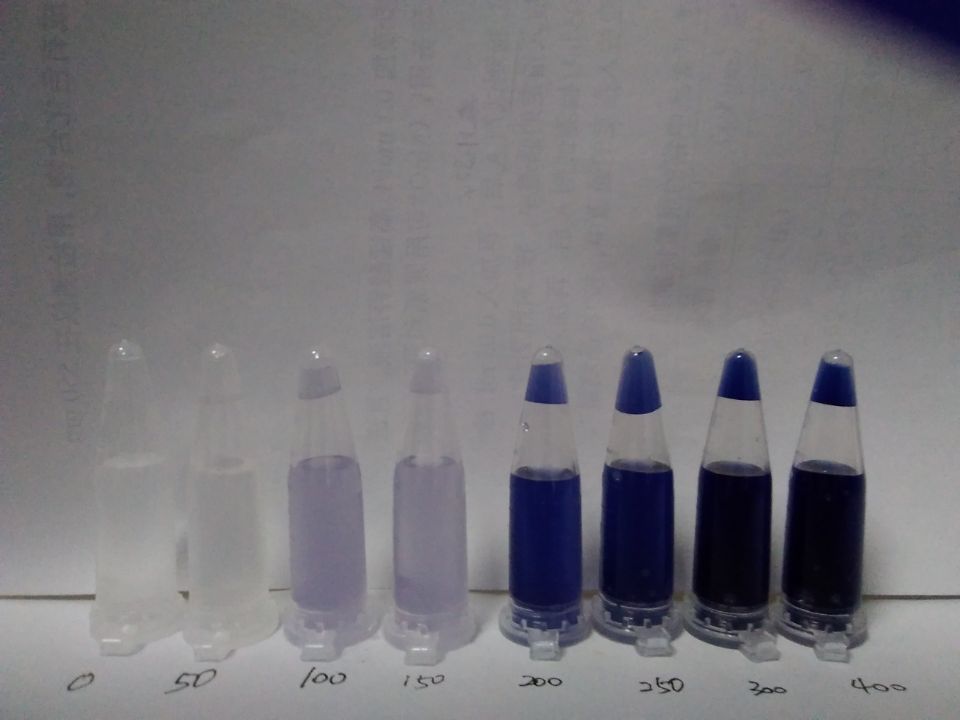 取0.5mL樣品液于離心管中,加入1 mL的檢測(cè)試劑,試劑立即與食鹽中的碘發(fā)生化學(xué)反應(yīng)而顯色。