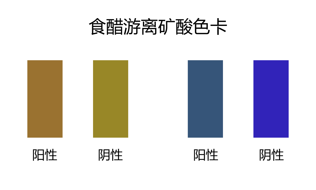 1.1:取細玻璃棒或毛細管沾少許樣品于檢測試劑A上,10min內,若點樣處出現紫色斑點或紫色環(環內淺紫色)為陽性結果,試紙不出現紫色斑或出現紫色環(環內黃色或白色)為陰性結果。(檢測白醋時要等試紙稍干后觀察);