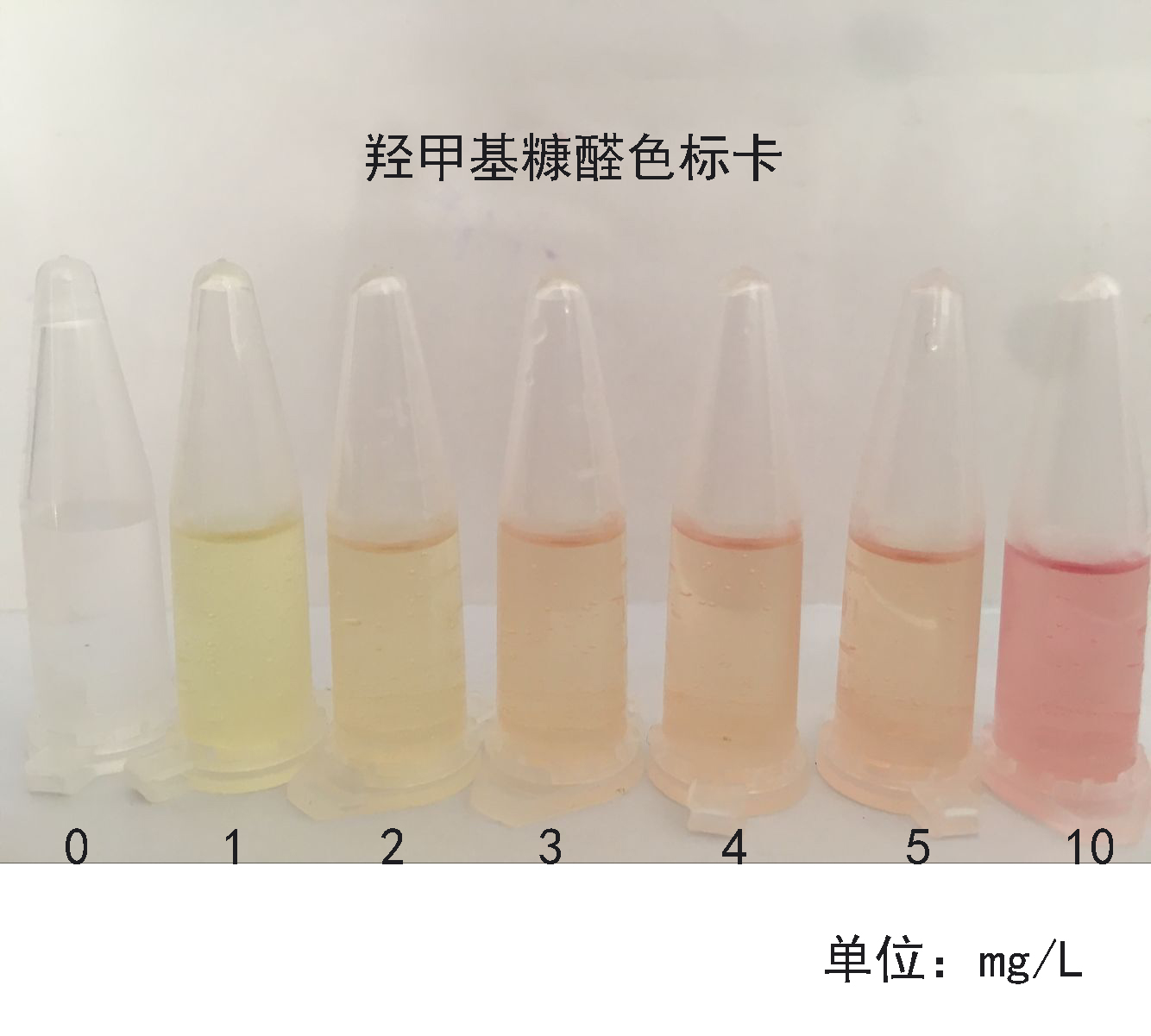 1.2:向試管1中加入0.3 mL樣品液,依次加入0.3 mL(6滴)檢測試劑A和0.15 mL(3滴)檢測試劑B,震蕩搖勻,濃度變化見色卡;